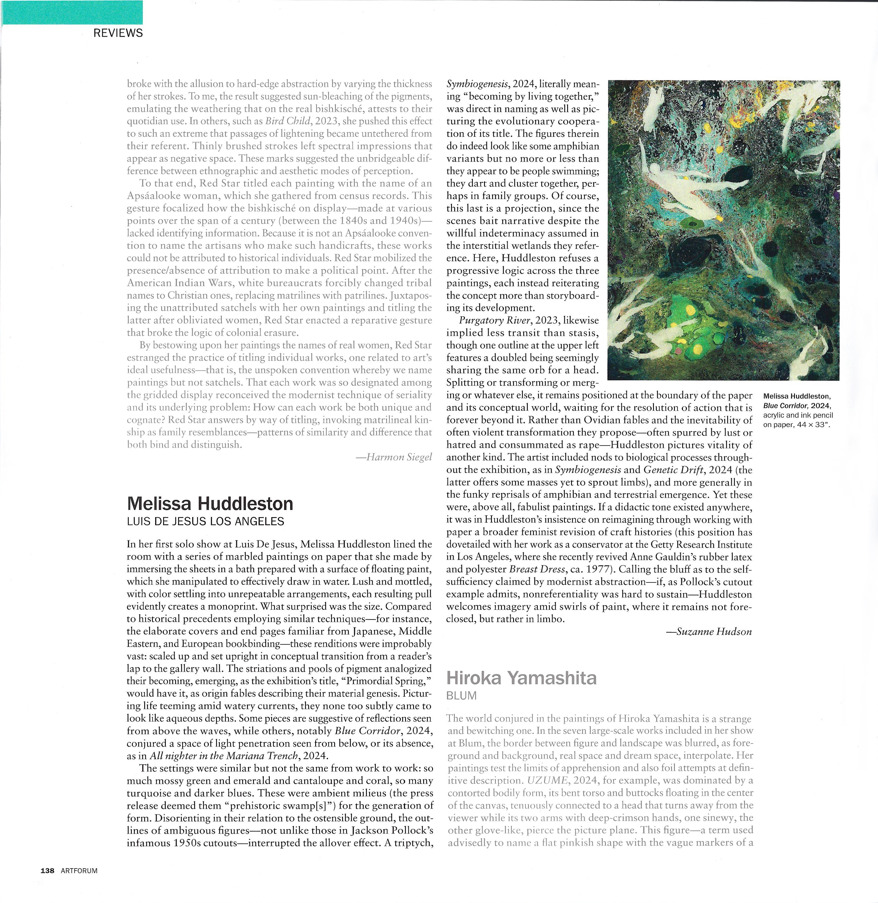 ["Painting Outside Painting," the 44th Biennial Exhibition of contemporary American painting at the Corcoran Gallery of Art] aims to provide an update on the perennial desire among painters to take painting beyond itself, that is, the compulsion to stretch the medium's physical limits and prod its conventions with unorthodox materials and techniques... Among those who take painting's basic formula to extremes, the most interesting is James Hyde, who paints with a gestural flair in oil on glass or in fresco on big blocks of Styrofoam that wittily conjure chunks of plaster cut from the monumental walls that challenged the fresco painters of old.