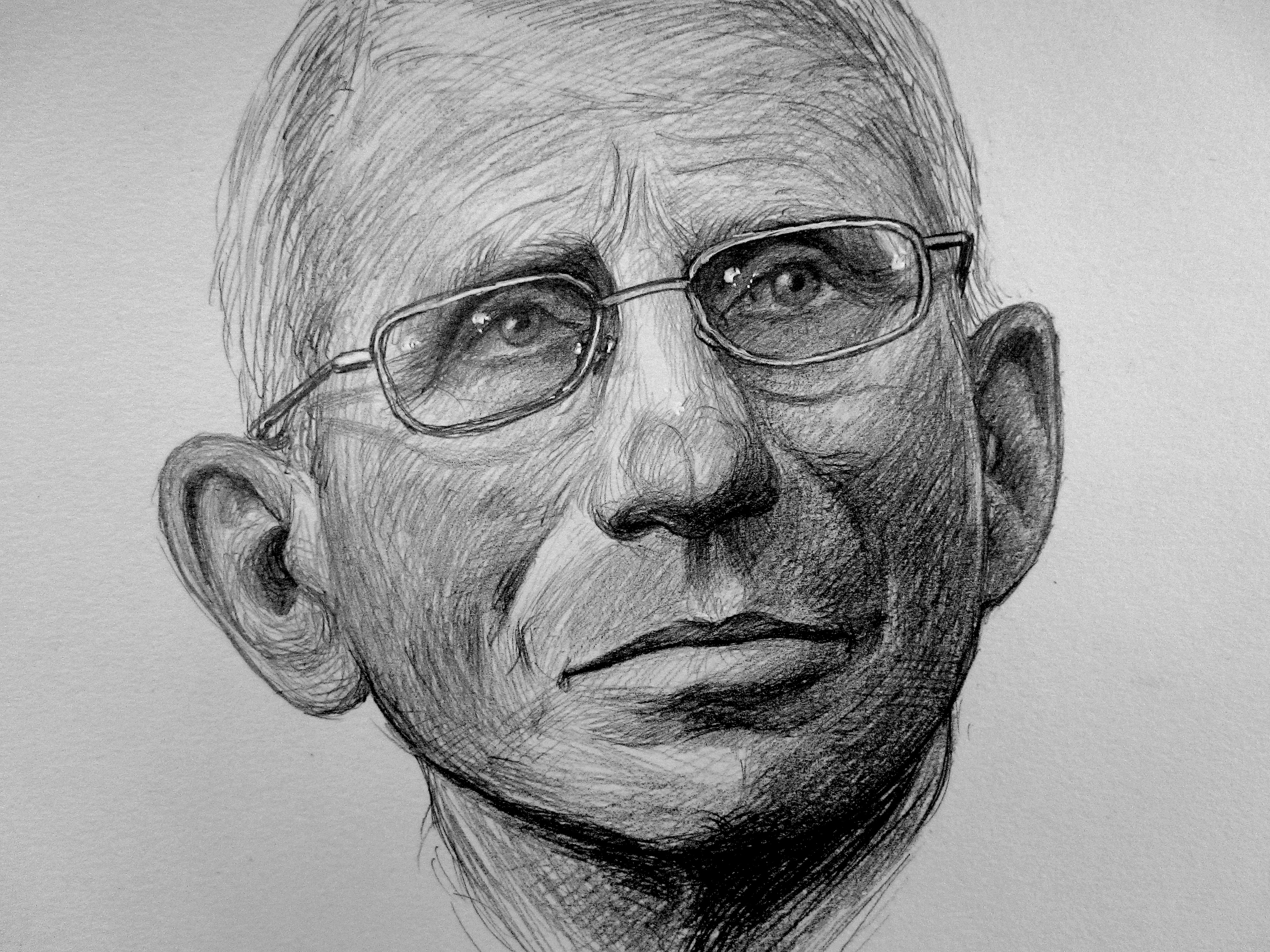Hugo Crosthwaite, who won first prize in the National Portrait Gallery’s fifth triennial Outwin Boochever Portrait Competition (2019), incorporated scientific illustrations, images from popular culture, and art historical references to create a dynamic portrait of Dr. Fauci. Through stop-motion drawing animation, Crosthwaite examines the career of this singular scientist and public servant, who managed two of the gravest health crises in recent history: HIV/AIDS and COVID-19. This innovative approach to portraiture permitted him to create a life story of Dr. Fauci and capture many of his contributions to medicine and the controversies that surrounded them. Crosthwaite’s portrait debuted alongside new commissions by Kenturah Davis, David Hockney, Kadir Nelson, Toyin Ojih Odutola, Robert Pruitt, and Ruven Afanador.